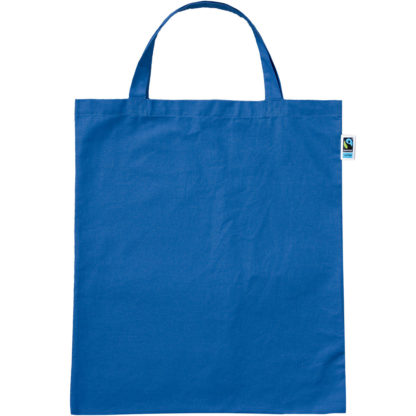 Mit Firmenlogo bedruckbare Tragetaschen aus Fairtrade Baumwolle, mit kurzen Henkeln als nachhaltiges Werbemittel. Eignet sich perfekt zum Einkaufen und besitzt die Taschengröße 38 x 42 Zentimeter.
