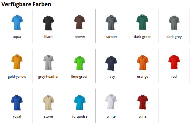 Für dieses Poloshirt stehen folgende Textilfarben zur Verfügung: