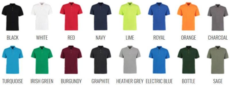 Das Poloshirt K400 ist in 16 verschiedenen Textilfarben erhältlich: