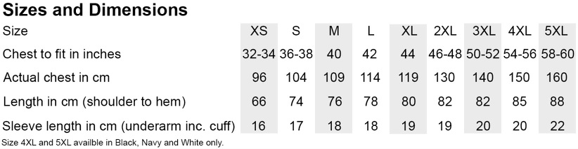 In 4XL und 5XL sind nur die Farben Black, Navy Blue und White erhältlich.